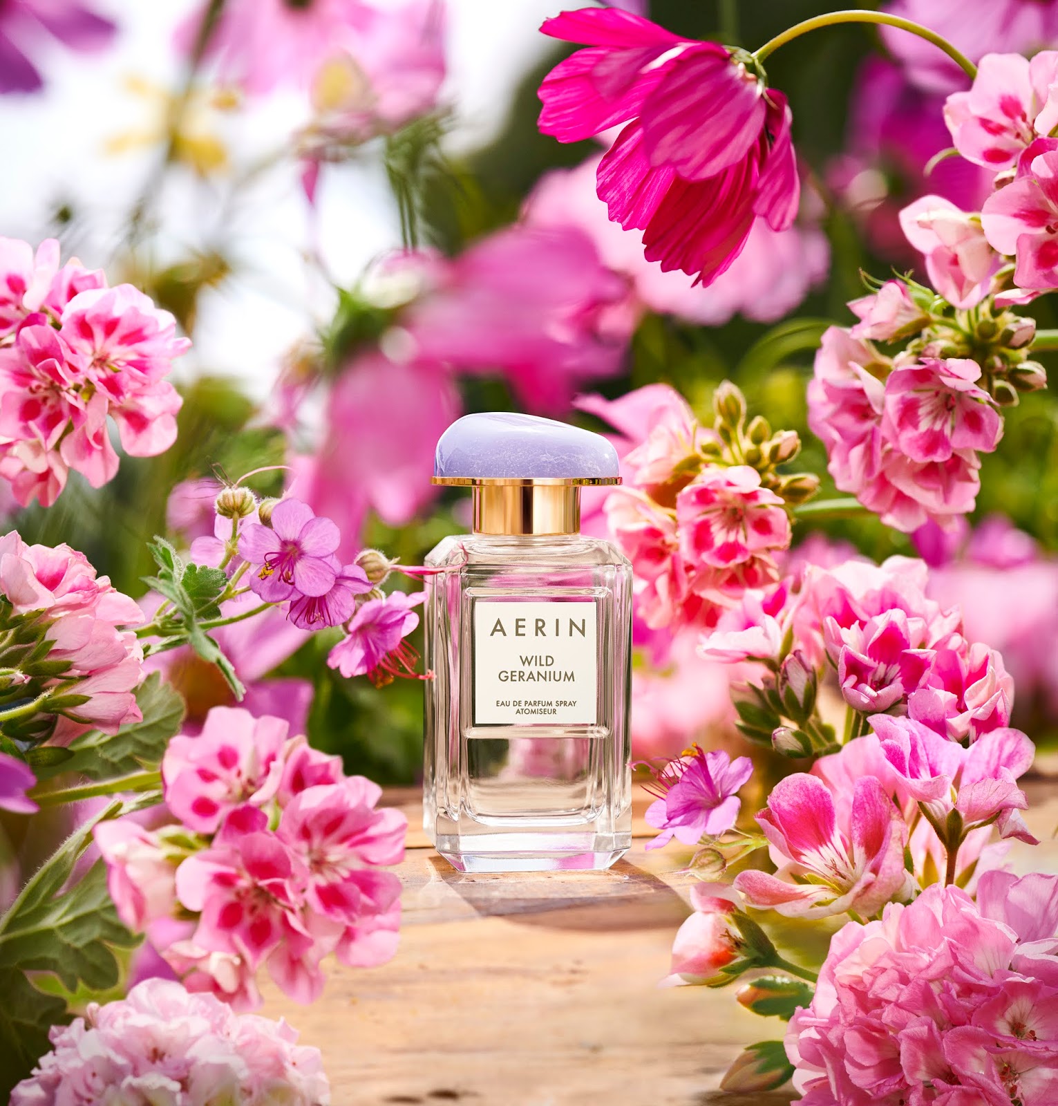 La NUOVA AERIN Wild Geranium, e’ una nuova e stravagante fragranza che trasporta in un prato infinito pieno di colore e sovrastato da un meraviglioso cielo blu, con un sole splendente ed un inebriante profumo di flora selvatica.