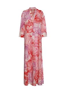 Tessuti leggeri e pregiati, come il lino, il cotone makò e il cashmere-seta, proposti in colori brillanti e caldi che evocano l’intensità dei tramonti e della positività.