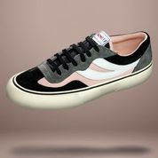 La scarpa di questa collaborazione è caratterizzata da un mix & match di materiali ed è realizzata con i colori sociali dello store il nero, il rosa ed il grigio per la tomaia ed il bianco per il logo swallow tail. L’outsole realizzata in gomma vulcanizzata riprende i colori della scarpa con tre fasce colorate, bianca, nera e rosa.