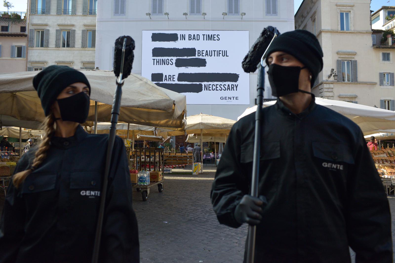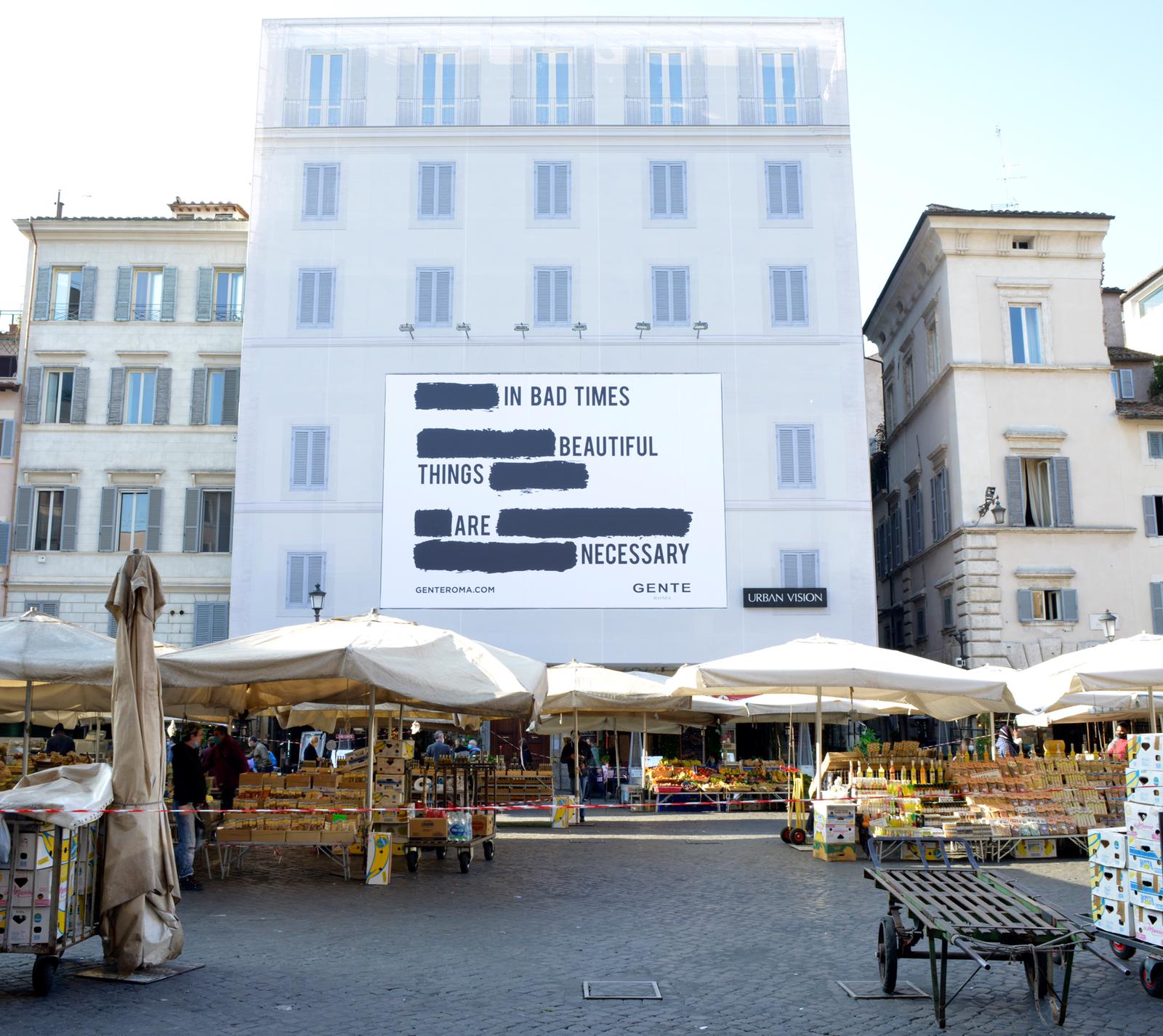 Il risultato finale della campagna è un video emozionale che ripercorre le fasi della creazione e del lancio del manifesto finale, attraverso la selezione del messaggio IN BAD TIMES BEAUTIFUL THINGS ARE NECESSARY, che ha svelato il mistero dell’inquietante affissione anonima comparsa una settimana prima a Campo De’ Fiori. Tra i vicoli e le piazze di una Roma eterna, colta alle prime luci dell’alba, il video è accompagnato dalla voce del doppiatore Andrea Mete, voce tra gli altri di John Legend, Zac Efron e Justin Timberlake.