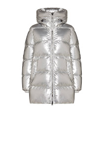 To the moon and back. Lo stile orbita attorno alla luna. Avvolgenti colli a cratere (lunare) per i giubbini silver permeati da atmosfere siderali. In versione cappotto o lunghezza cropped, hanno il cappuccio regolabile e sono realizzati in tessuto con imbottitura interna di piumino e fondo leggermente svasato regolabile da coulisse interna. Astrali in quanto a performance, cosmici in fatto di look.