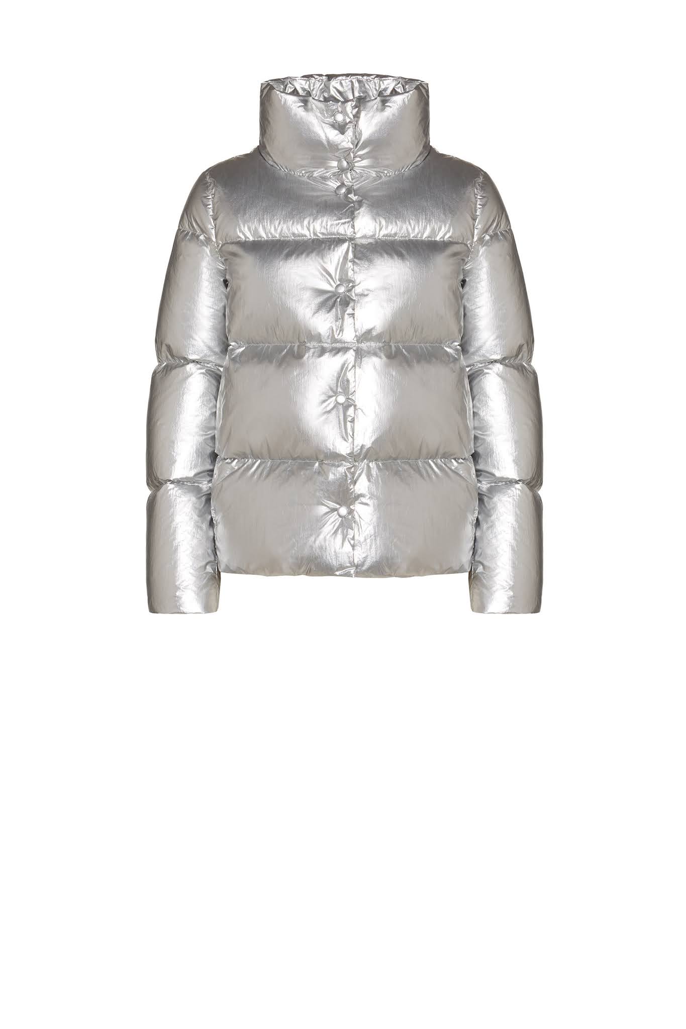 To the moon and back. Lo stile orbita attorno alla luna. Avvolgenti colli a cratere (lunare) per i giubbini silver permeati da atmosfere siderali. In versione cappotto o lunghezza cropped, hanno il cappuccio regolabile e sono realizzati in tessuto con imbottitura interna di piumino e fondo leggermente svasato regolabile da coulisse interna. Astrali in quanto a performance, cosmici in fatto di look.