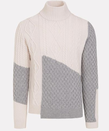 Immancabile il turtleneck, ispirato allo stile nordico, che sicuramente ognuno di noi ha scartato almeno una volta nella vita il giorno di Natale. Design minimal, punti maglia irregolari, rigature e losanghe per la maglia color ghiaccio, vivacizzata da inserti patchwork e sbilanciamenti craftgrigio pietra a contrasto. Il maglione dell’inverno 2020 suggella il ritorno alla terra ai suoi cromatismi più freddi e alle sue texture, rievocando panorami montani.