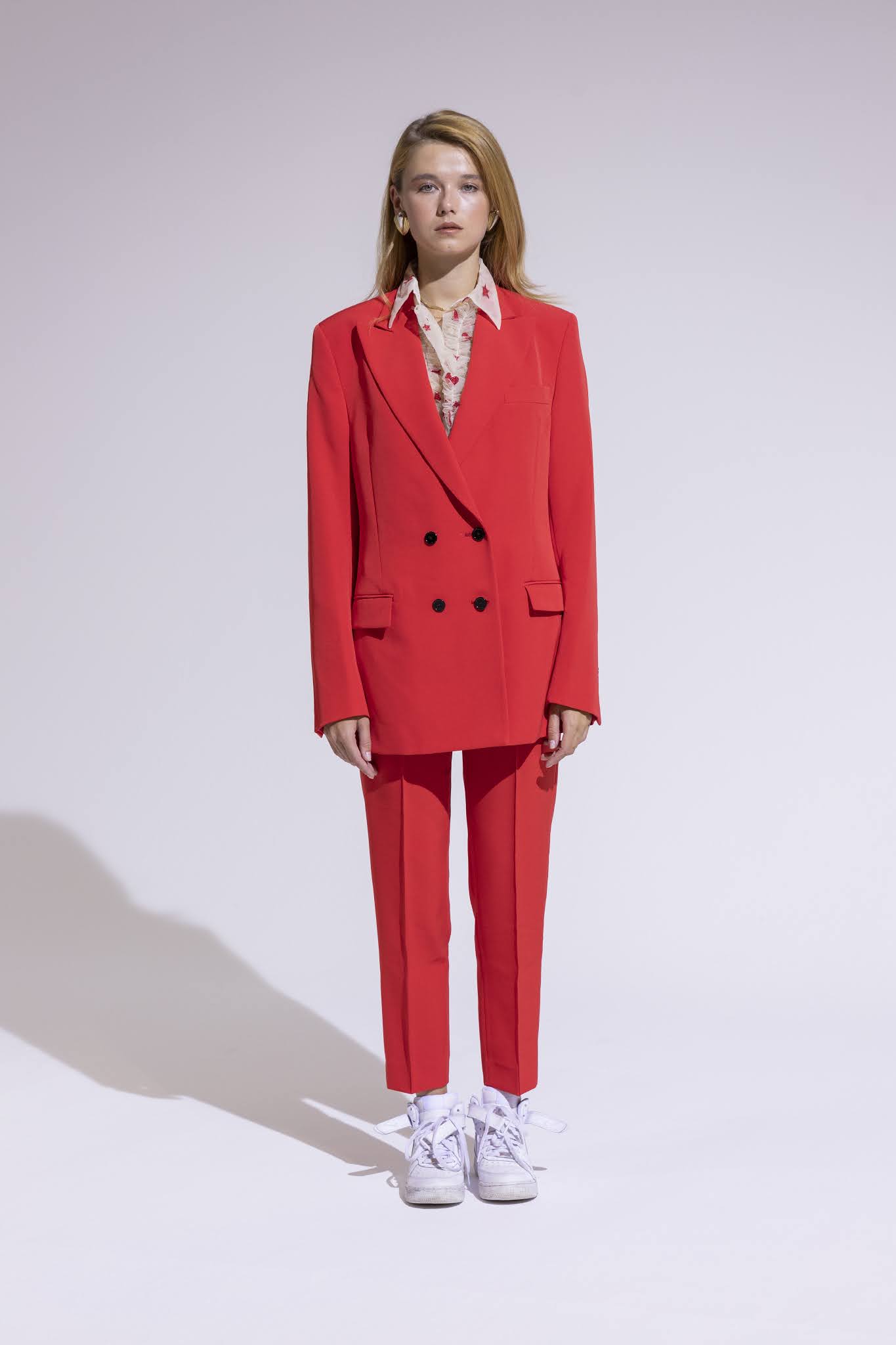 Proprio la camicia ha un ruolo di rilievo in collezione, taglio smoking e rubata all’universo maschile,
