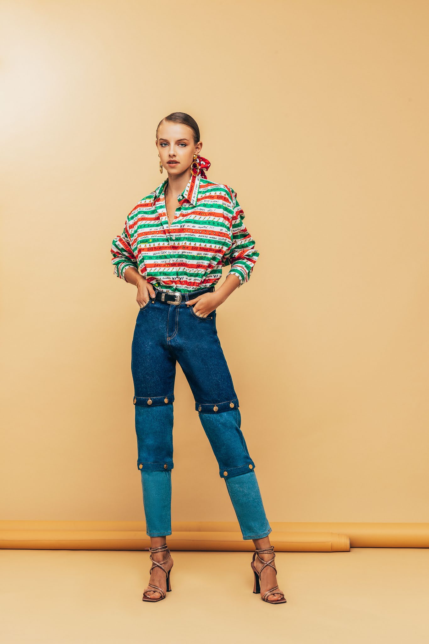 Mai banale e sempre attuale la proposta denim di Alessandro Enriquez, dal bi/tri colore dei suoi jeans a minigonne e capispalla con dettagli “bottone\”.