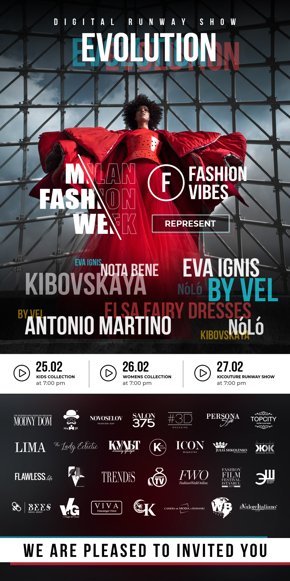 Parola d’ordine “rendere la fashion week sempre più aperta al mondo” motto che resta la priorità per l’EVOLUTION FASHION VIBES RunWay ideato daYuliia Palchykova arrivato alla 5° edizione con lo scopo di attrarre il maggior numero di ospiti e addetti ai lavori sia italiani che stranieri.