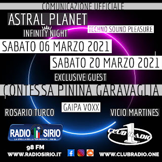 Il programma ASTRAL PLANET \”Il pianeta della Techno\” in onda tutti i sabato da mezzanotte in Club Radio One e Radio Sirio presenta una formula originale ed innovativa dell\’intrattenimento radiofonico nell\’ambito della Nightlife Culture.