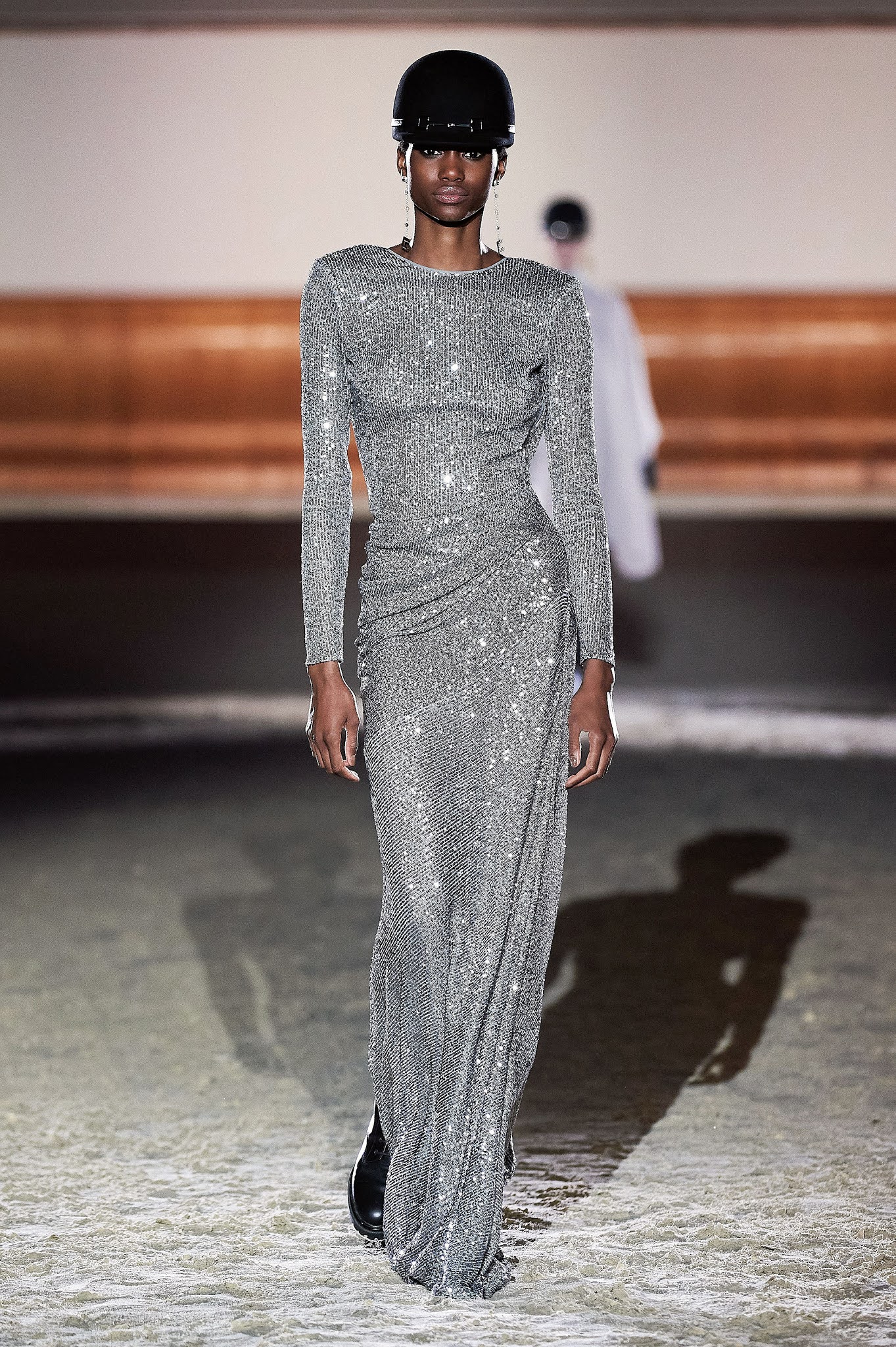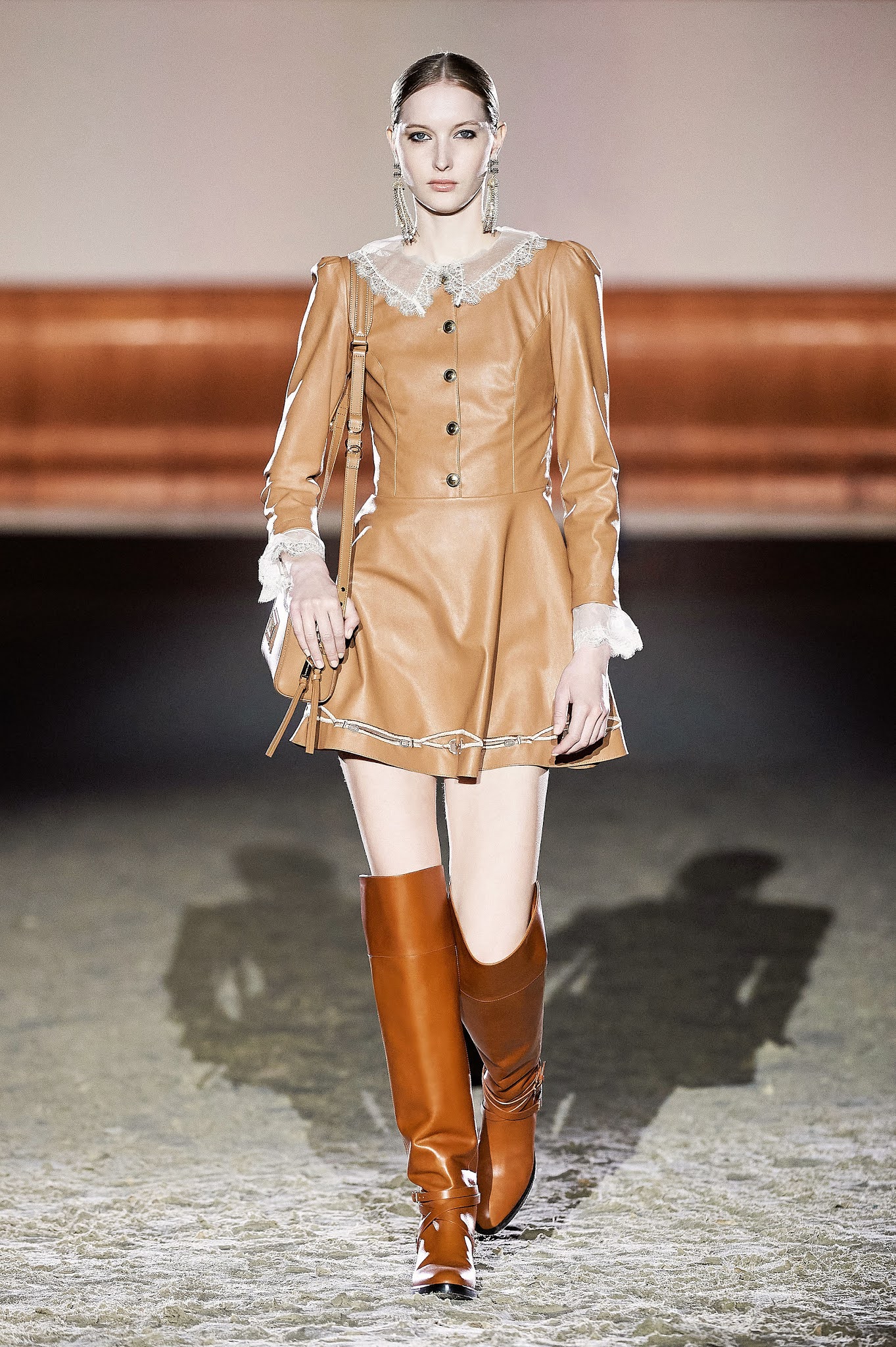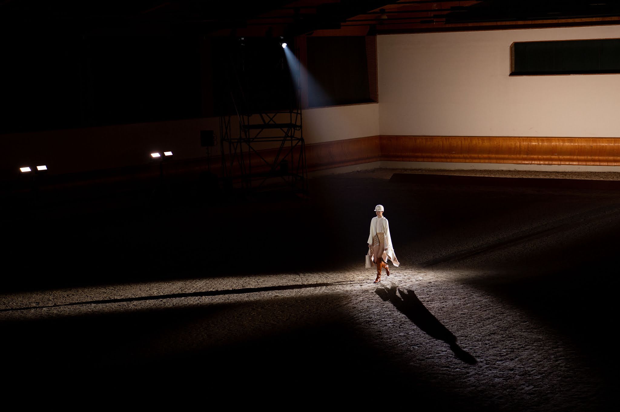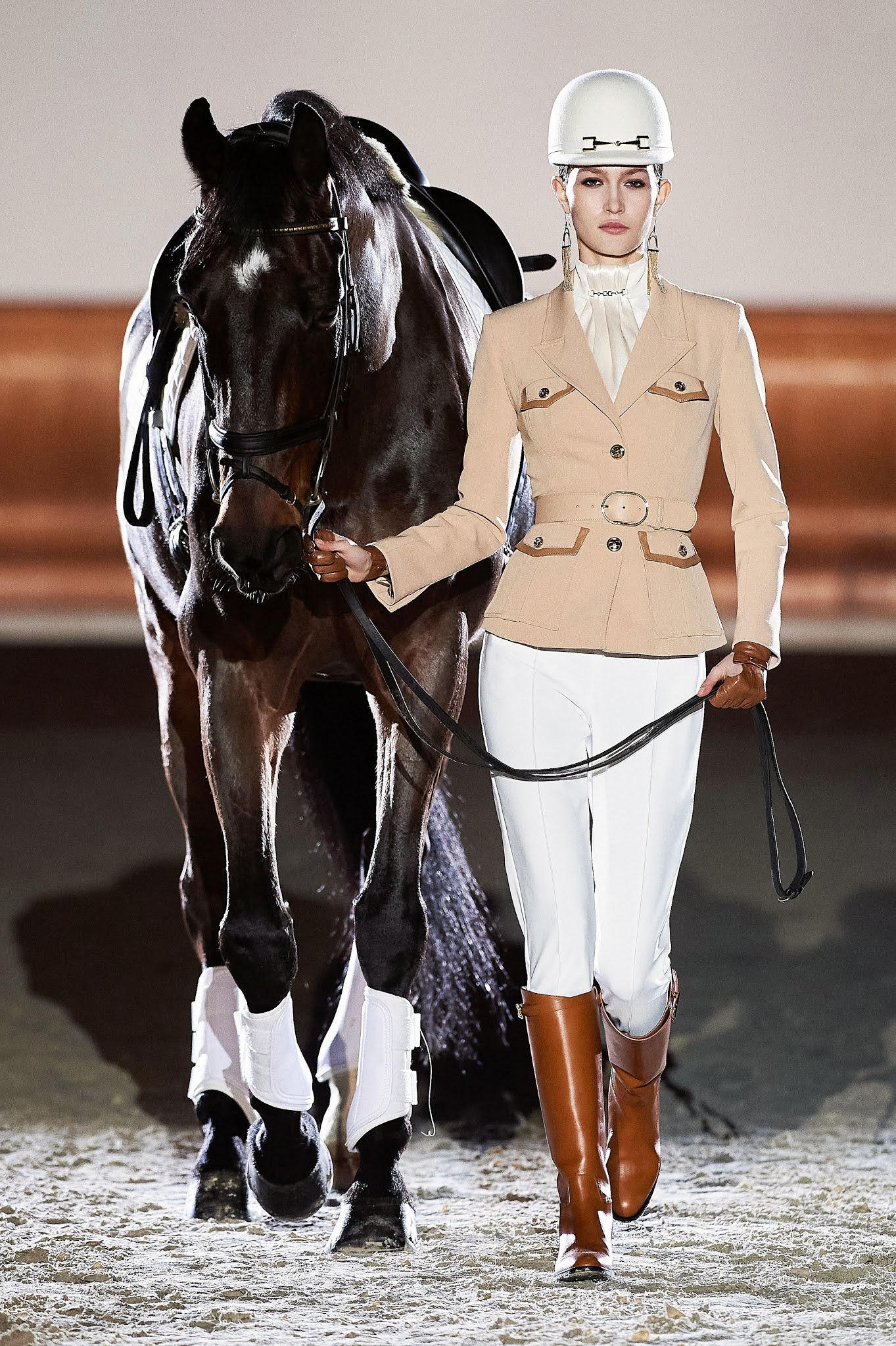 Elisabetta Franchi presenta la Collezione Fall-Winter 2021-2022, in un’atmosfera dal gusto raffinato e dallo stile cavallerizzo.L’immagine portata in passerella da Elisabetta Franchi è quella di una donna tanto femminile quanto audace, che si distingue per la sua eleganza aristocratica.È la stagione della metamorfosi, in una società che vede le donne interpretare una pluralità di ruoli, la Maison pone l’accento sulle donne che non hanno timore di nulla e che vogliono cavalcare la loro quotidianità con coraggio.Si rincorrono le linee classiche in una palette di colori decisi e raffinati che ricordano scenari eleganti e preziosi. Un vero e proprio salto ad ostacoli fra cappotti, maglieria in tweed, pantaloni e stivali da cavallerizza, bluse ancien régime abbinate ad accessori presi direttamente dai portagioie delle dame di sangue blu.Viene rappresentata un’eleganza intima, da scoprire, attraverso sovrapposizioni non ostentate, ma sinuose e garbate.