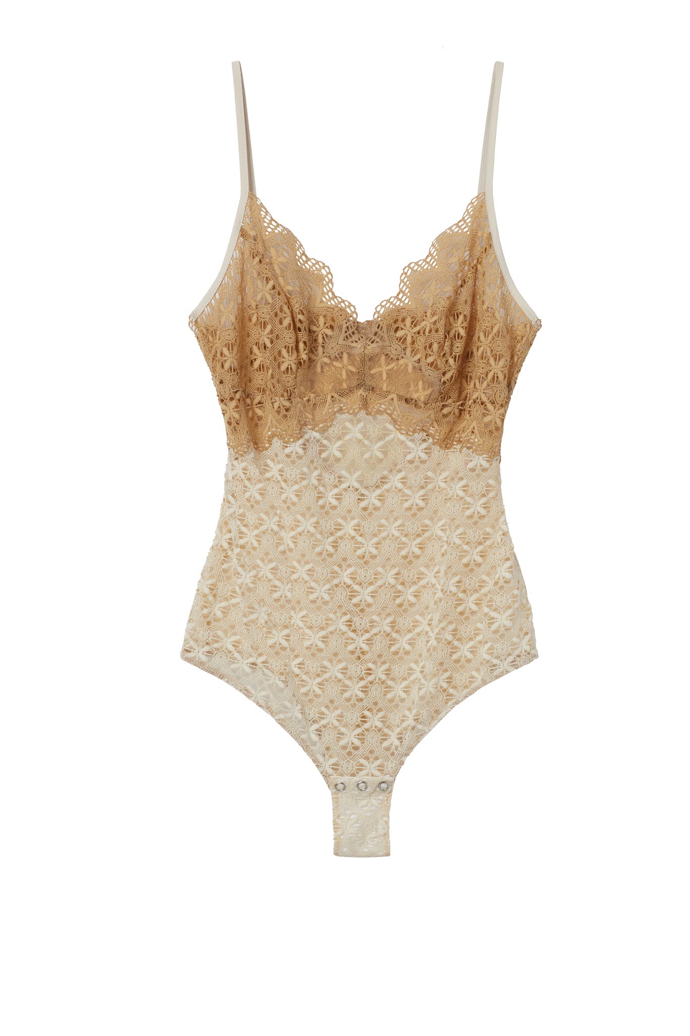 Nelle tonalità del sand viene proposto il body bicolore e il triangolo imbottito con fascia sotto seno, con possibilità di abbinamento a slip classico o brasiliano. Esternabili le due proposte nella variante chiara caratterizzate da tintura in noce di galla (cecidio prodotto dalla puntura di vari insetti): blusa e bra top in pizzo saranno i capi perfetti per accendere di glam i look primaverili.