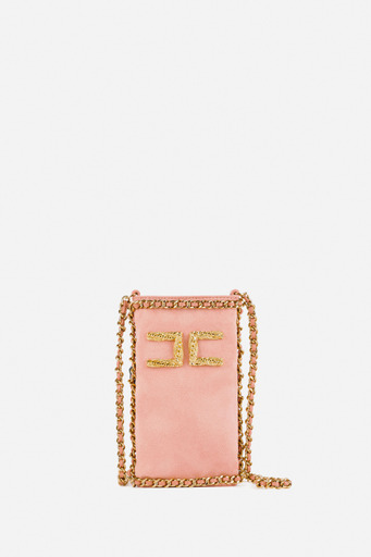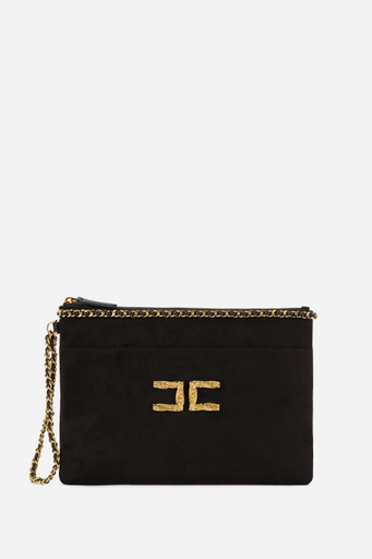 Tutta la Collezione si arricchisce di galvanica in oro bronzato e di logo del brand composto da un intreccio di micro-catene, applicate al tessuto effetto nappa e scamosciato, completamente Animal Free.