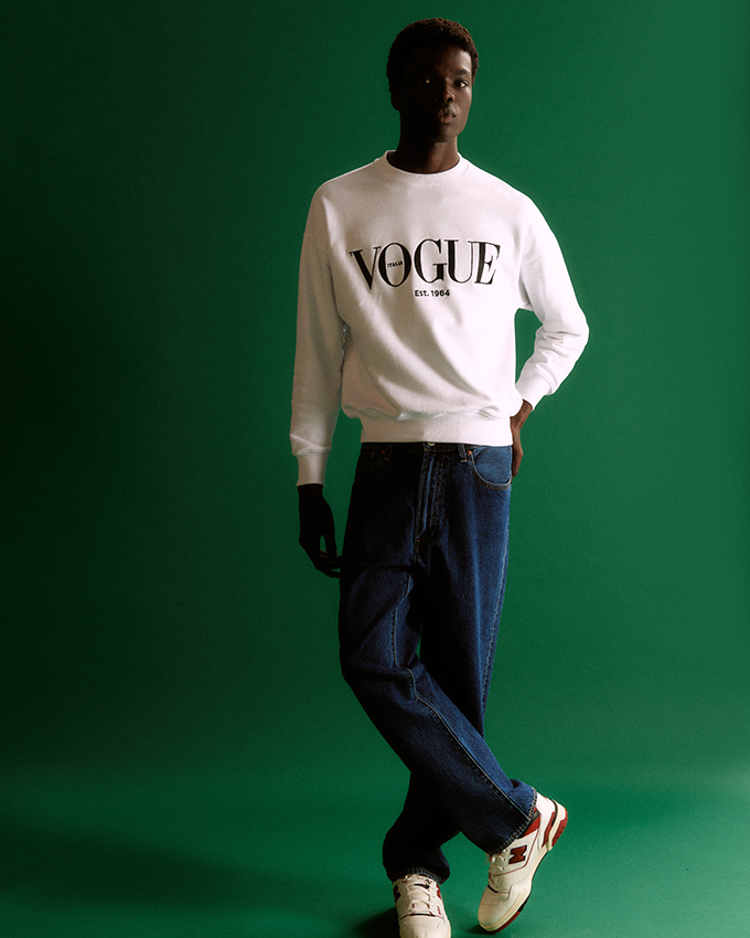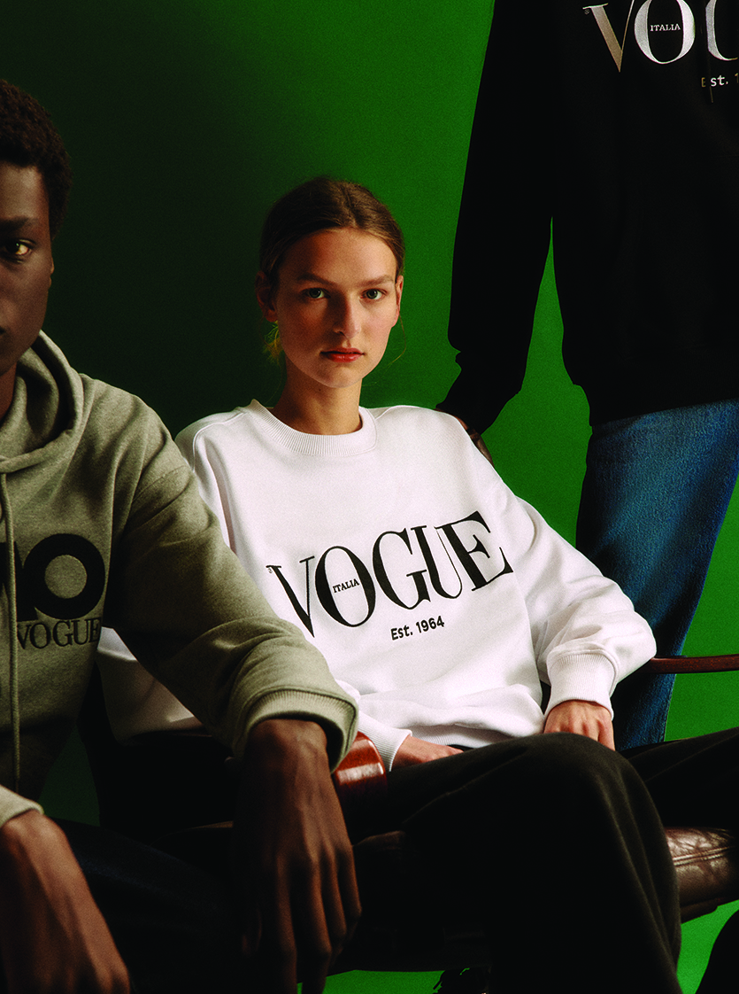 La collezione italiana (Vogue Italia Limited Edition), che si unisce a una vasta offerta con un catalogo prodotti di grande qualità a marchio VOGUE, è composta da due T-shirt e quattro felpe versatili, oversize, disinvolte, nei toni binari del bianco optical e del nero assoluto.