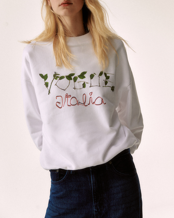 Capi fluidi, no gender, un po’ street style, con dettagli pop ma anche sartoriali; le versioni con il logo classico ricamato e con la data di fondazione, il 1964, sono dedicate alla storia di Vogue Italia; i modelli con la scritta in corsivo, disegnata a mano, conducono invece ai temi green cari al magazine e alla graphic-art giocosa e innovativa di Verderi.
