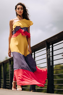 Partendo da una creatività libera, manifestatasi in una serie di bozzetti, diventati dei veri e propri manifesti di felicità, le sei creazioni moda prendono ispirazione dalla necessità di proporre positività. Dopo un periodo di restrizioni e limitazioni, la capsule collection prende vita e fa della cromaticità, il punto focale dell’intero mood.
