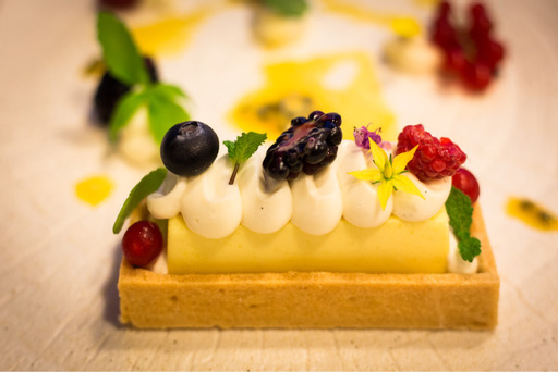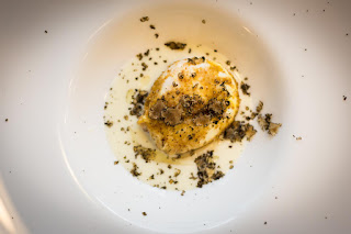 Aprendo il menu di Primo Osteria si percepisce una chiarezza d’intenti espressa proprio dall\’ordine mentale e dal rigore con cui vengono esposti i piatti. La carta è, quindi, suddivisa per titoli e si parte con degli elementi vegetali, Né carne né pesce: Uovo croccante in pochè, parmigiano e tartufo, Tempura di verdure di stagione, mayonese al basilico e salsa agrodolce, Melanzana ripiena, Gnocchi di latte cagliato di capra, crema di cipolla rossa caramellata e verza croccante. A seguire, vengono introdotti i Crudi, questa volta sia di carne che di pesce, e ancora i Plateau; infine, altri piatti che sono menzionati per tipo di preparazione e tecnica. Quindi, si hanno le Marinature, come nel caso di Sgombro, Carpaccio di salmone e Carpaccio di carne salada con le sue salse, oppure le Cotture a bassa temperatura con il Filetto alla Wellington, la Coscia di pollo farcita, la Pancia di maialino da latte, il Calamari carciofi e tartufo, il Polpo croccante e il Tonno in olio cottura. I primi sono divisi tra Pasta fresca sia base acqua e farina che formati all\’uovo; la Pasta secca che utilizzano è dell\’azienda laziale Lagano con cui condiscono gli immancabili romani come \”Sua maestà\” la Carbonara, un piatto imperdibile se si mangia da Primo che si presenta avvolto in un cremoso spaghettone, l\’Amatriciana con le maniche, mentre i bucatini sono per la Gricia di mare con il polpo. Gli altri carboidrati si ritrovano alla voca Riso cacio pepe limone e asparagi oppure nel Riso al salto con zafferano, ricci di mare e gremolada. Si chiude in Dolcezza con Sferamisù, Banana, arachidi e caramello salato, Cheesecake al lampone, Profiterole limone, cardamomo, pepe di Sichhuan, fragoline e frutti di bosco e arancia e il Magnum di Primo. Nota di merito per la preparazione dei lievitati di propria produzione che accompagnano il pasto: a tavola arriva ancora calda una pagnotta ai cereali, più fette di un filone e nel cestino del pane anche crackers home-made.