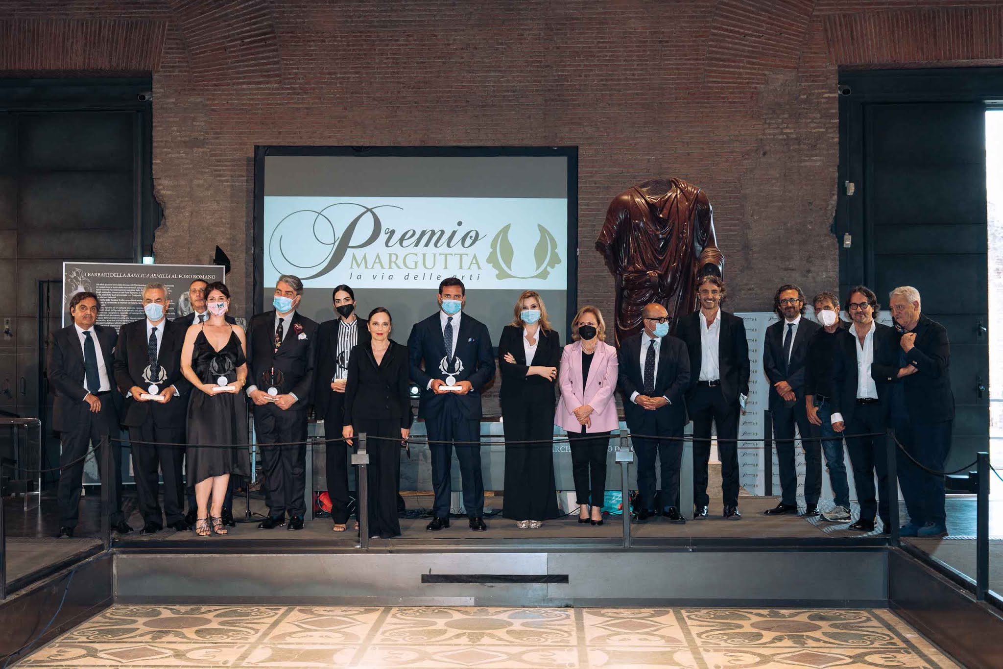 Nella Curia Iulia, l’antica sede del senato romano, autorevoli personalità del mondo delle arti, della cultura e dell’informazionehanno ritirato l’ambita scultura del “Premio Margutta – La Via delle Arti”, realizzata dal Maestro orafo Gerardo Sacco, ispirata ai due mascheroni della “Fontana degli Artisti” realizzata in bronzo, perspex, acciaio specchiato mentre la base riprende lo stesso travertino della fontana con lavorazione a poro aperto.