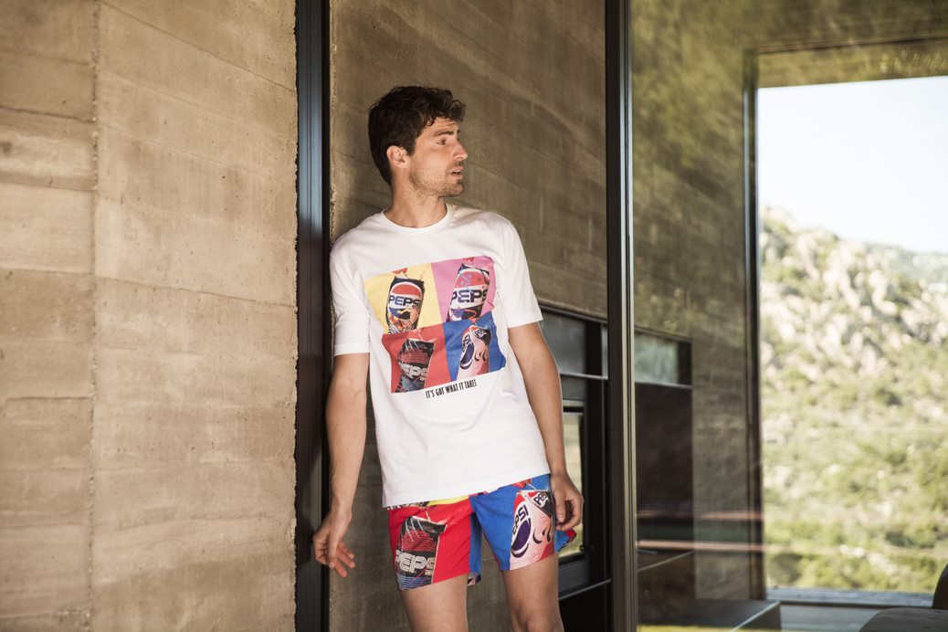 Pepsi porta un’ondata di freschezza, con una capsule di costumi, underwear e t-shirt dal sapore vintage pop. La bevanda è riprodotta con stampe fotografiche macro e allover in stile pop art con gli infondibili logo e lattine, irresistibilmente cool.
