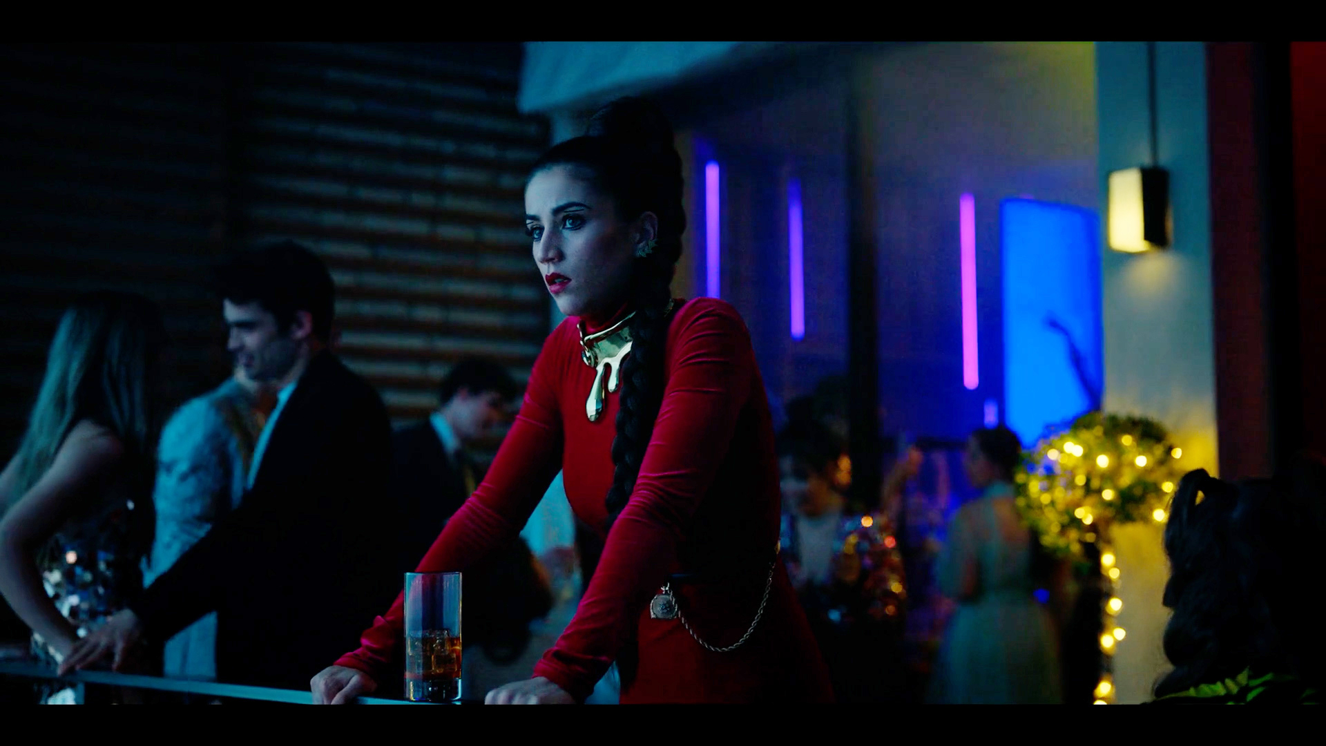 Rebeca, interpretata dall\’affascinante Claudia Salas, indossa un lungo abito dalla FW 19-20. Un look in velluto total red, dal fit castigato e sexy, scenografico e eye-catching, perfetto per Rebeca, una femme fatale misteriosa e taciturna che nasconde in realtà una sensibilità toccante. L\’elogio degli opposti di uno dei personaggi chiave delle nuova stagione, in arrivo su Netflix venerdì 18 giugno, passa anche attraverso questa creazione di Yezael, morbida e strutturata, sensuale e delicata allo stesso tempo.