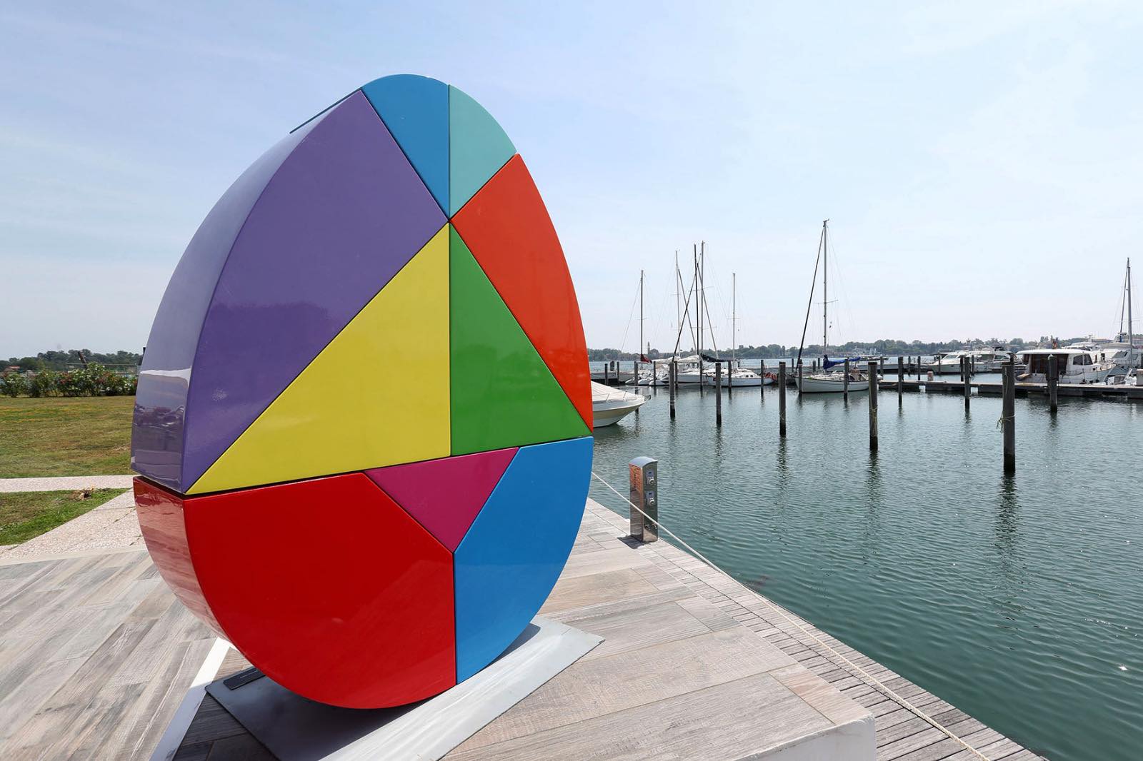 Negli eleganti spazi dell’Hôtel des Pȇcheurs situato nella fiera terra còrsa dell’Isola di Cavallo, lì dove il cielo si fonde con il mare in un respiro blu, l’artista italo svedese, conosciuta ed apprezzata a livello internazionale grazie allo stile del tutto peculiare e unico del suo operare artistico, propone un’ampia antologia di lavori tra cui spiccano le sue installazioni Ab Ovo e le opere interattive costituite da prismi rotanti.