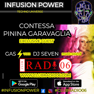 L’iconica Contessa Pinina Garavaglia, regina della nightlife internazionale, poetessa che ama recitare i suoi versi su base musicale techno, presenta \” INFUSION POWER\” il nuovo concept di intrattenimento radiofonico da lei ideato nell\’ambito della Club Culture su ClubRadio 06.