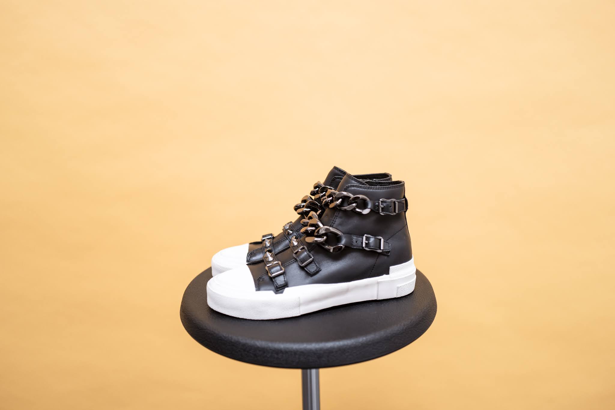 Per questa stagione ASH sceglie il nero come nuance protagonista delle sue nuove collezioni. Black anche per il mondo sneaker con il modello GALAXY in pelle caratterizzato da dettagli di borchie in metallo, fibbie e catene. Anche per la FW21 ASH continua a giocare con stili e materiali proponendo la sneaker in tela con mix di stampe ghepardo ed etnico.