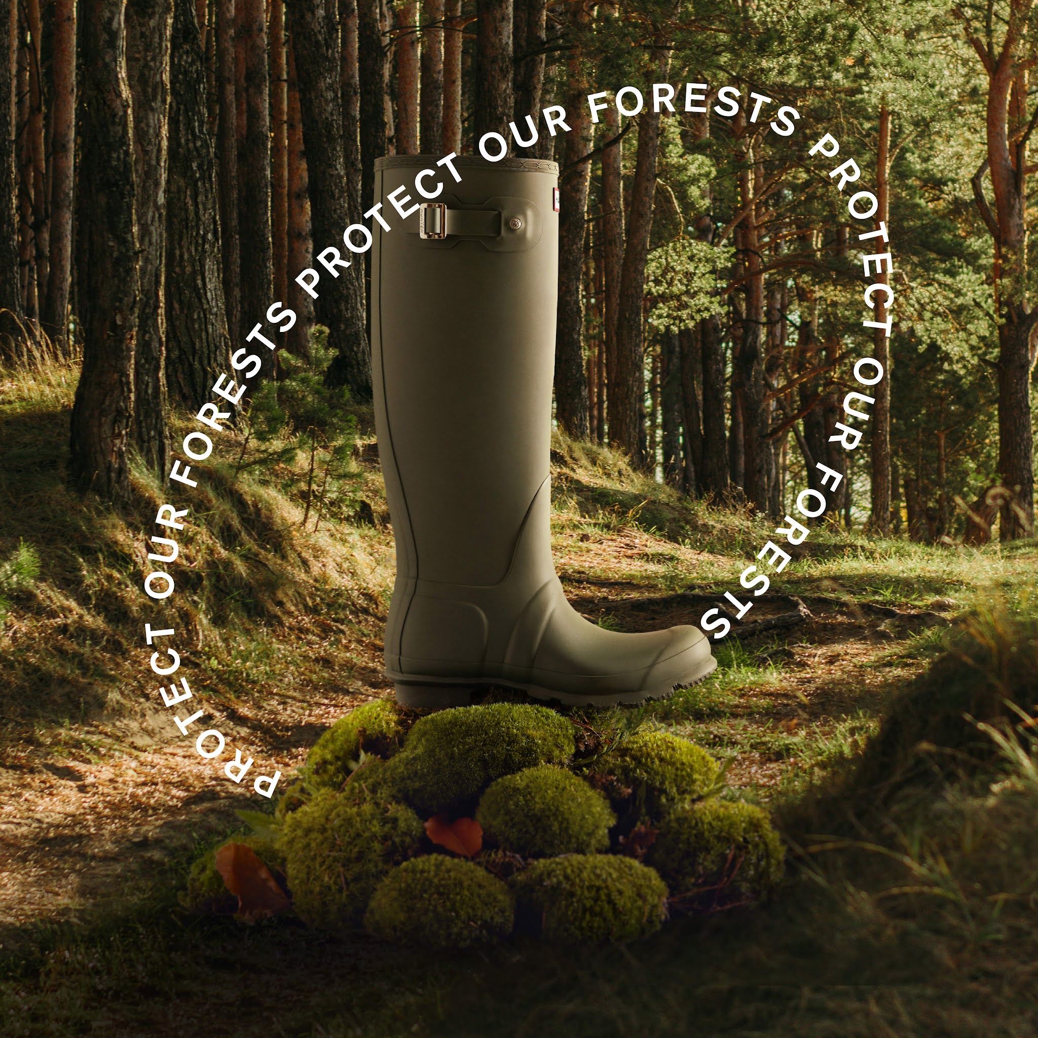 Hunter, sempre più sostenibile, per la stagione Autunno – Inverno 2021 lancia la collezione \”Protect Our Forests\”, con i due boot Original Forest Tall e Original Forest Short realizzati in gomma certificata FSC.