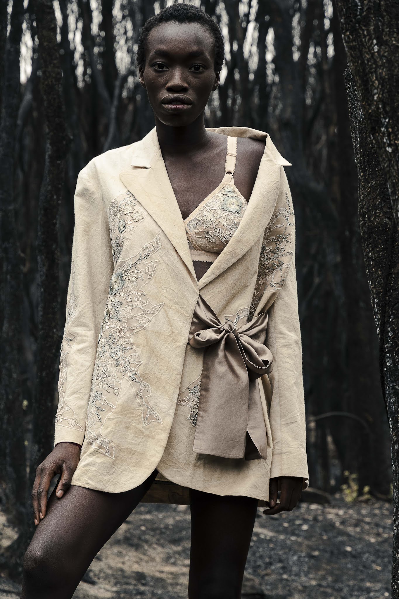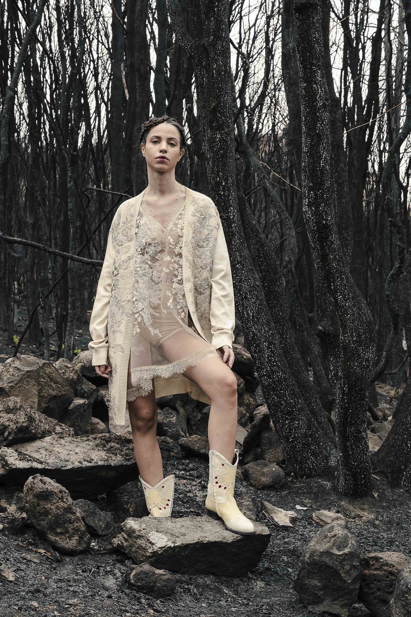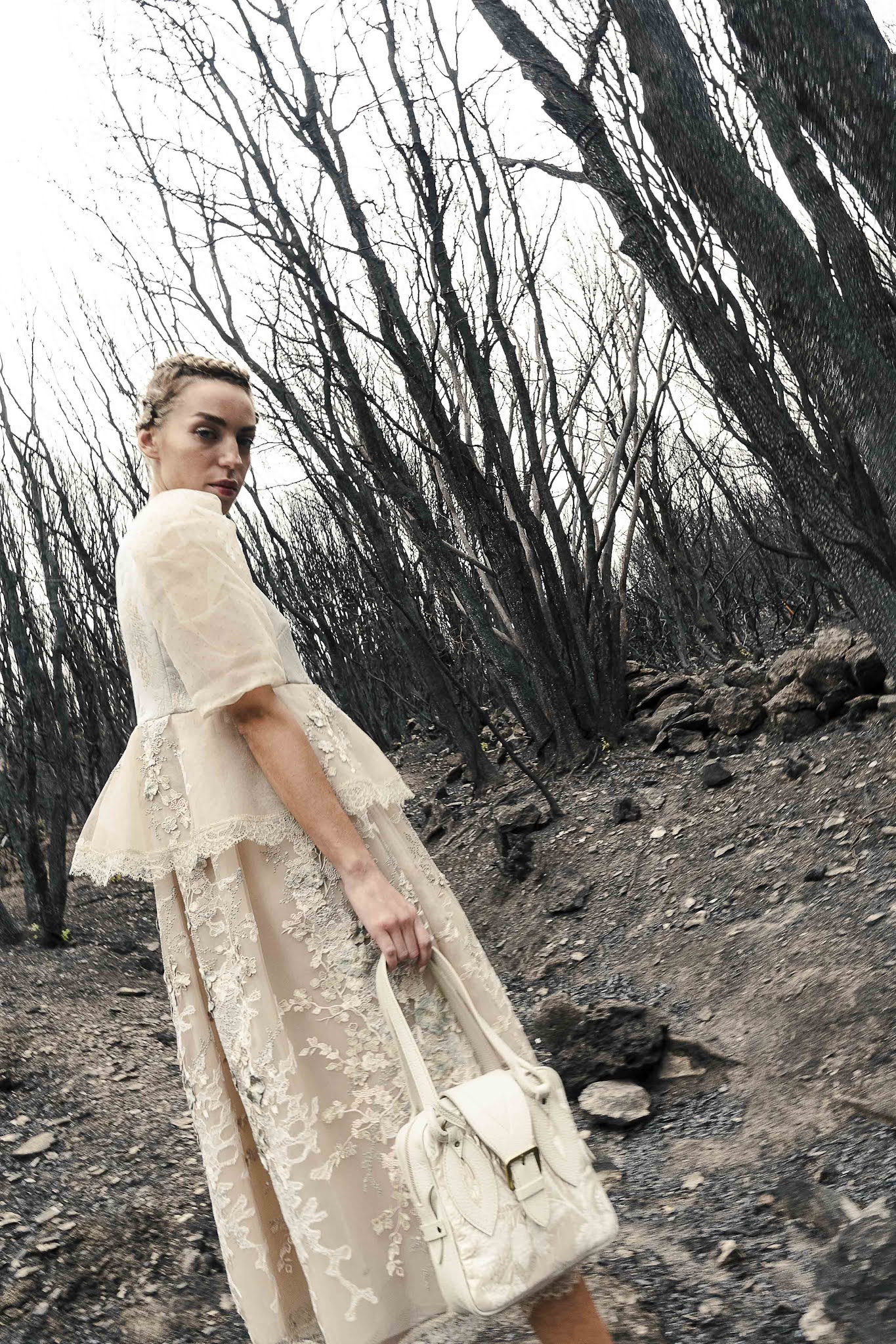 Ragazzi e ragazze, disorientati e increduli, si aggirano tra la foresta ferita per renderle omaggio.