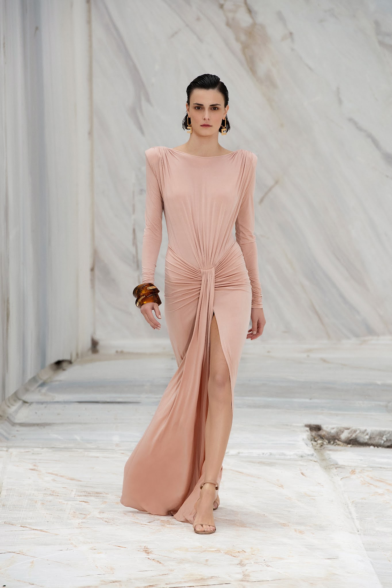 In una location imponente e suggestiva, le donne presentate da Elisabetta Franchi avanzano coraggiose con l’allure femminile cifra stilistica del brand.