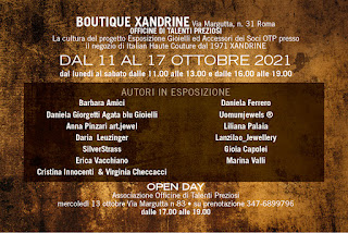 BOUTIQUE XANDRINE – OFFICINE DI TALENTI PREZIOSI – Esposizione Gioielli ed Accessori dei Soci OTP presso la boutique-atelier di Italian Haute Couture dal 1971 XANDRINE Via Margutta, n. 31 Roma