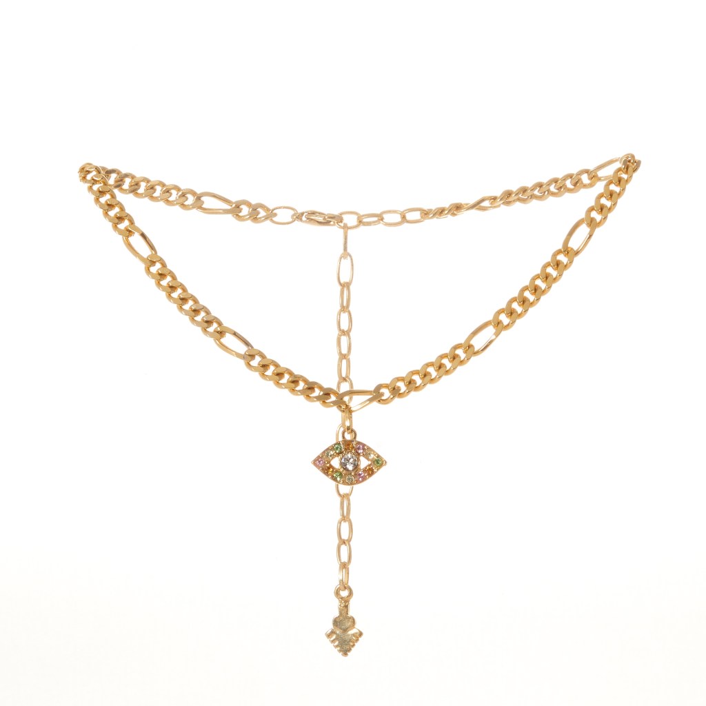 The Pauline, l’all-seeing eye con cristalli multicoloreincastonato a mano al centro della catena classica placcata in oro 18K. L’occhio non è solo un amuleto protettivo presente in maniera trasversale in molte culture, soprattutto del bacino mediterraneo, ma è anche un invito ad andare oltre le apparenze perché, come recita un celebre romanzo, non si vede bene che con il cuore…