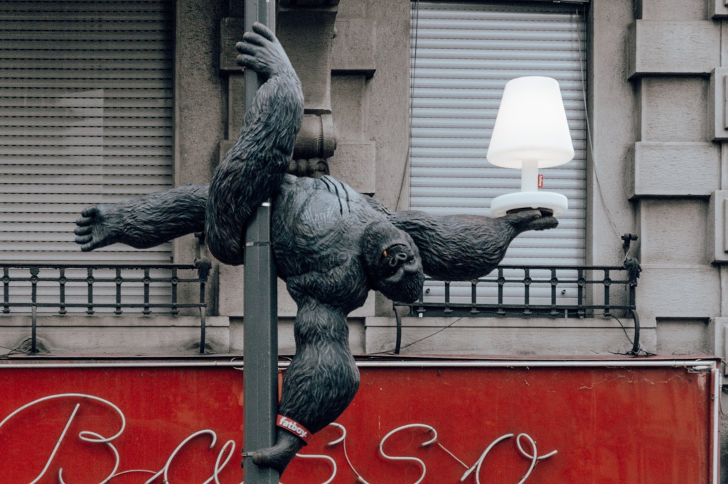 Un po’ troppo secondo Fatboy e Street Art Frankey che hanno scelto un’ospite speciale per la loro apparizione meneghina. King Kong, il re della giungla, sorprende davanti all’iconico bar di Via Plinio, il ritrovo preferito della Milano amante del design. Una narrazione inedita e divertente, di un animale sinonimo di forza, lo mostra ruotare elegantemente intorno ad un palo della luce mentre bilancia l’iconica lampada Edison di Fatboy sulla zampa anteriore.