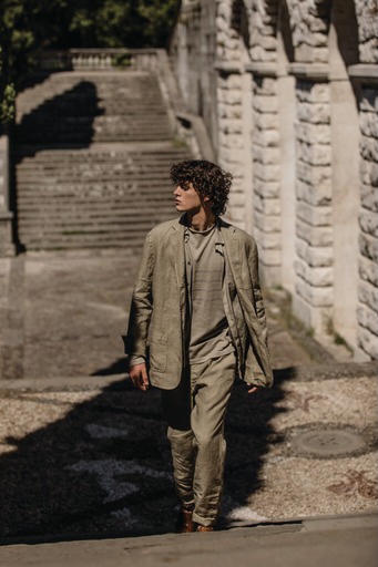Malo per il gentlemen sofisticato, sia in città che in vacanza propone: completo giacca e pantalone verde militare, camicia con collo alla coreana in blu e color corda, bermuda beige, giacca e pantalone blu, tutti in pregiato lino, biologico e naturale.