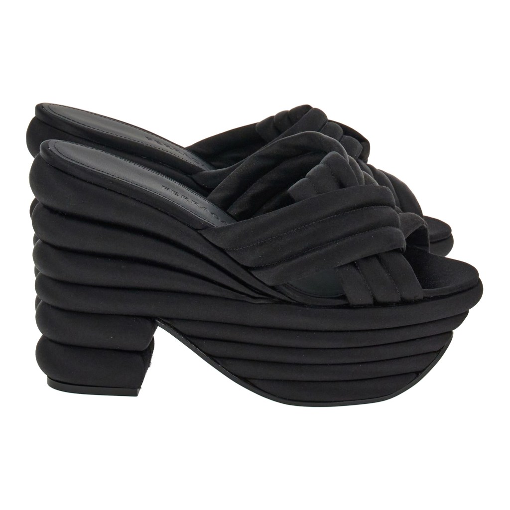 La nuova versione proposta da Maximilian Davis per la stagione Pre-Fall 2023 è una mule realizzata in satin monocolore e riprende la forma della zeppa originale enfatizzandone il design con colori vibranti,