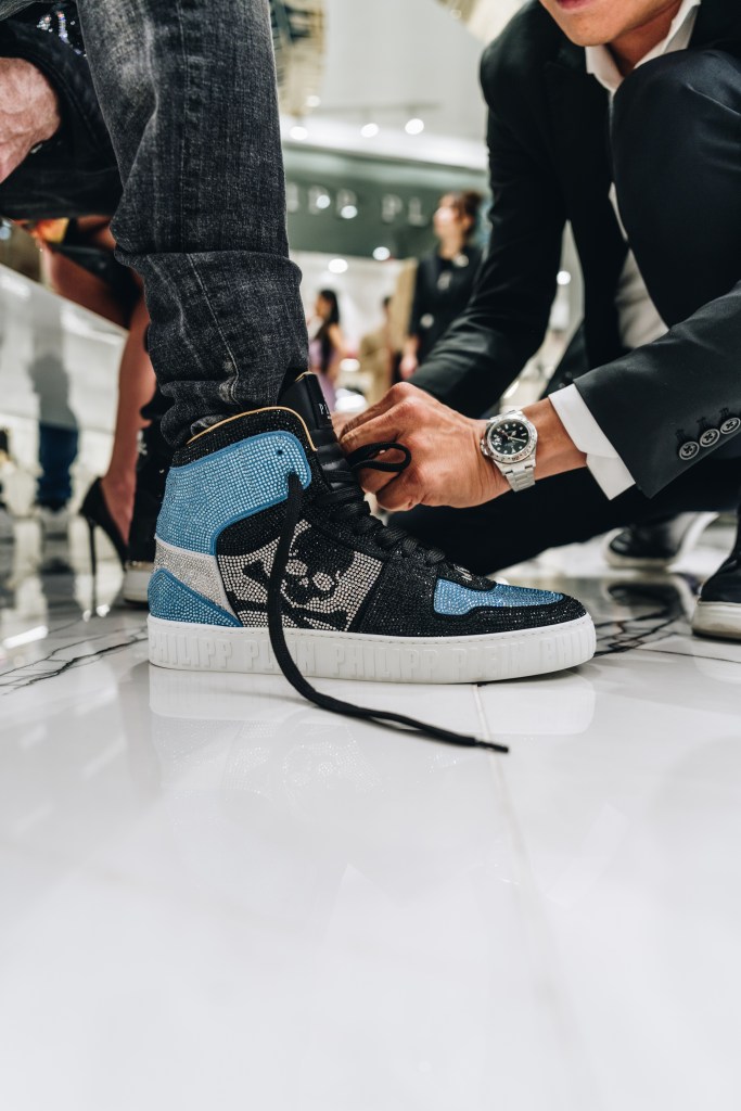 Occhiali e orologi Philipp Plein sono in mostra, disponibili per l’acquisto attraverso l’esperienza del cliente privato, insieme alle collezioni principali complete di prêt-à-porter, Rinascimento moderno e Mille e una notte.