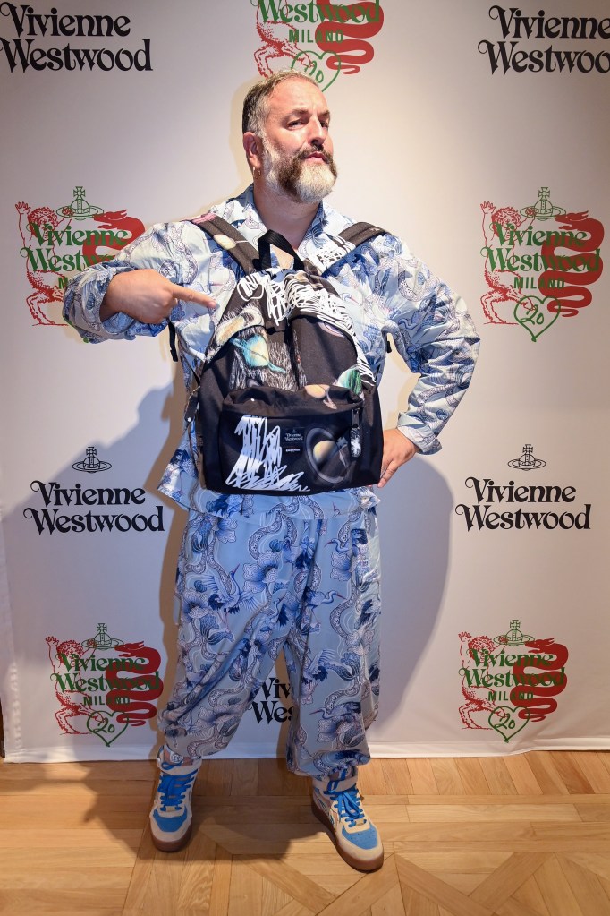 Per celebrare il 20° anniversario della presenza di Vivienne Westwood nel cuore di Milano, è stata rivisitata la speciale grafica creata due decenni fa per la prima apertura del negozio: un artwork che unisce l’iconografia della casa di moda inglese e il simbolo della città, combinando il satiro, emblema di Vivienne Westwood, e il Biscione di Milano. Un connubio che vuole rappresentare il profondo legame della maison con la community italiana della moda e del design.