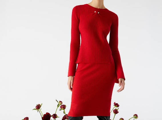 Il colore dominante è il rosso che con il rosa e il bianco si arricchisce di dettagli di perle, texture e sfrangiature. Vestibilità over e slim per gli abiti mini, il blazer corto, la felpa boxy e ricche maglie maxi o fitted, definiscono la capsule rendendola dinamica e versatile.