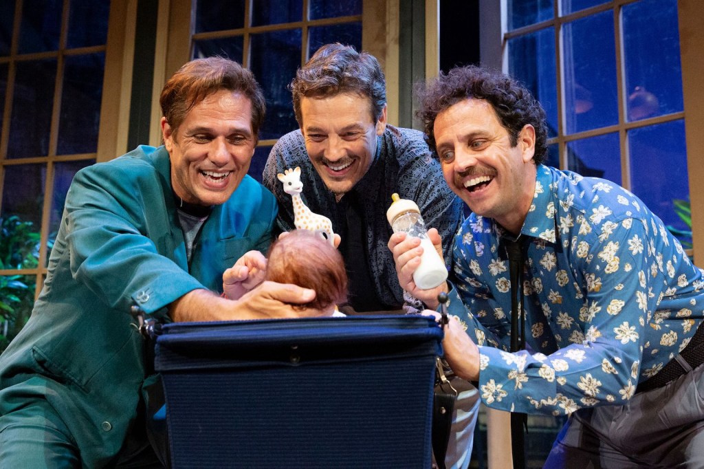 La storia. In un grande e lussuoso appartamento nel centro di Parigi convivono in perfetta armonia tre scapoli impenitenti: il noto donnaiolo Jacques (Fontana), steward dell’Air France; Pierre (Lupano), impiegato presso una agenzia; Michel (Pignotta), disegnatore tecnico per uno studio di progettazione. I tre ‘single d’oro’, interpretati da Attilio Fontana, Giorgio Lupano e Gabriele Pignotta, occupano il loro tempo libero organizzando feste, cene e incontri galanti. In una di queste serate un amico prega Jacques di poter fare arrivare alla loro abitazione un pacchetto importante, Jaques però dimentica di informare i coinquilini e parte per un lungo viaggio di lavoro. Il pacco arriva; ma alla porta viene trovata anche una culla. Un ritrovamento che sconvolgerà la vita dei ragazzi. Da qui parte la commedia. Fedele alla vicenda originale, lo spettacolo tratta con lievità e brio il ruolo dei padri e i nuovi modelli di famiglia.