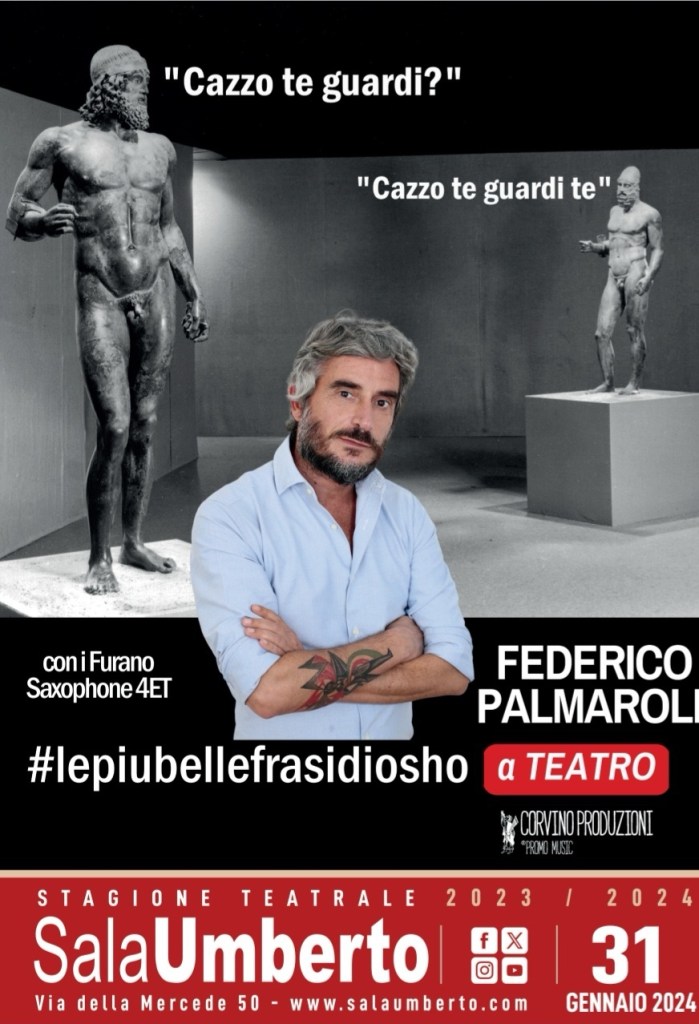 #lepiubellefrasidiosho è l’hashtag social in cui Federico Palmaroli ordisce urticanti e divertenti situazioni surreali. Decontestualizzando le immagini, catturate dal flusso mediatico tramite tagli originali, Palmaroli attribuisce irriverenti battute ai loro eminenti protagonisti. Sono irresistibili carrellate di personaggi della politica, del costume, dello sport e della spiritualità che si esprimono con un linguaggio “da strada” e che proprio per quel senso del contrario innescano meccanismi del tutto esilaranti.