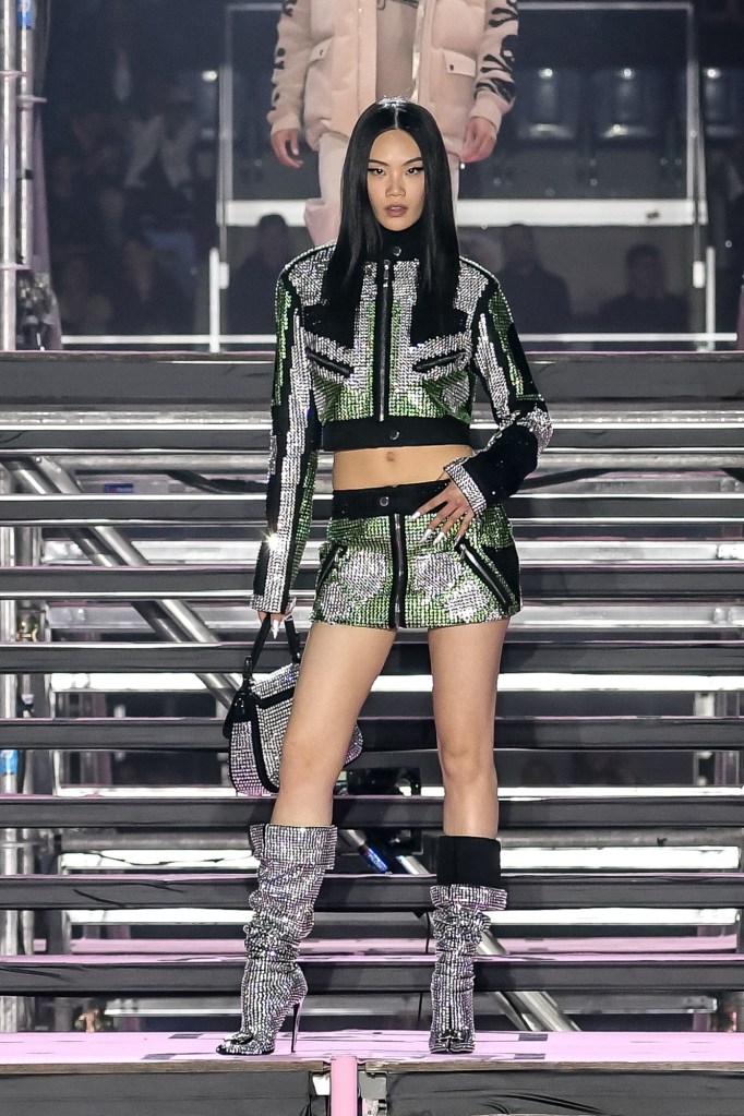 Questa stagione vede una straordinaria fusione di motivi monogramma, accenti denim, dettagli che simboleggiano la logomania e cristalli lussuosi. Philipp Plein presenta una gamma eclettica di abbigliamento maschile e femminile, tra cui completi in pelle, una tavolozza neutra con tocchi di blu e verde per l’abbigliamento da giorno, passando a sorprendenti capi neri decorati con cristalli per la sera.