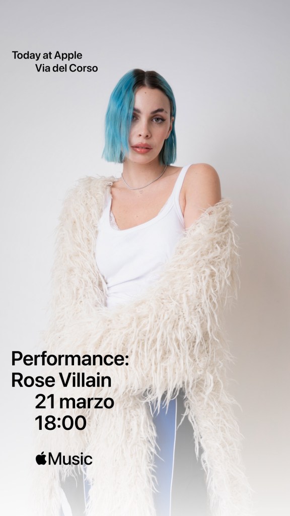 Giovedì 21 marzo, Rose Villain sarà la protagonista del nuovo evento musicale Today at Appleorganizzato allo store Apple Via del Corso a Roma. Durante lo speciale incontro presentato da Apple Music, i fan potranno scoprire una delle artiste più originali del panorama italiano, amata per la sua energia esplosiva e la sua interpretazione del presente.