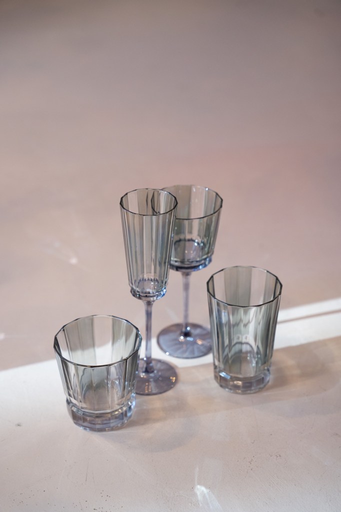 I pezzi e i colori sono ispirati alla collezione LuisaBeccaria per la primavera / estate 2024; infatti i giochi di luce, le tinte delicate e le forme fluide che caratterizzano gli abiti sono proposti anche in calici e tumbler di vetro dipinti a mano o in cristallo con effetto degrade’.