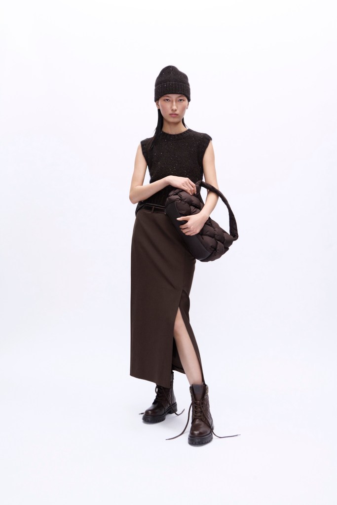 Raso misto seta, flanella soft touch e l’immancabile viscosa stretch: la scelta dei tessuti conferma l’attenzione verso materiali responsabili quali i cotoni biologici, le fibre riciclate, ma anche imbottiture provenienti da upcycling come il Cameluxe e le fibre cellulosiche provenienti da una gestione controllata delle foreste.
