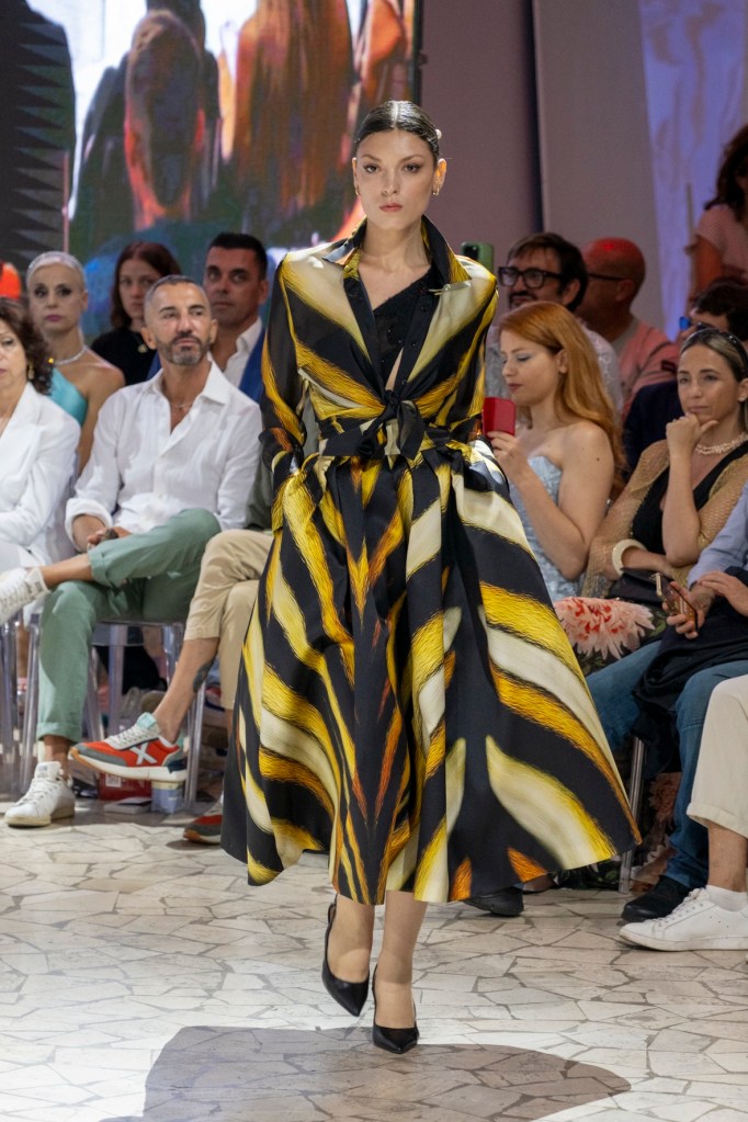 Nella prima giornata dei talents hanno sfilato sull’allestimento coreografico immacolato le creazioni ecosostenibili di Concita Ties & Pearls, quelle di RaimondaCasale, Saro Mattia Taranto, Sonia Verrelli, Pina Grasso e di Coldiretti Donne con una collezione che ha messo in connessione il mondo food con quello del fashion.