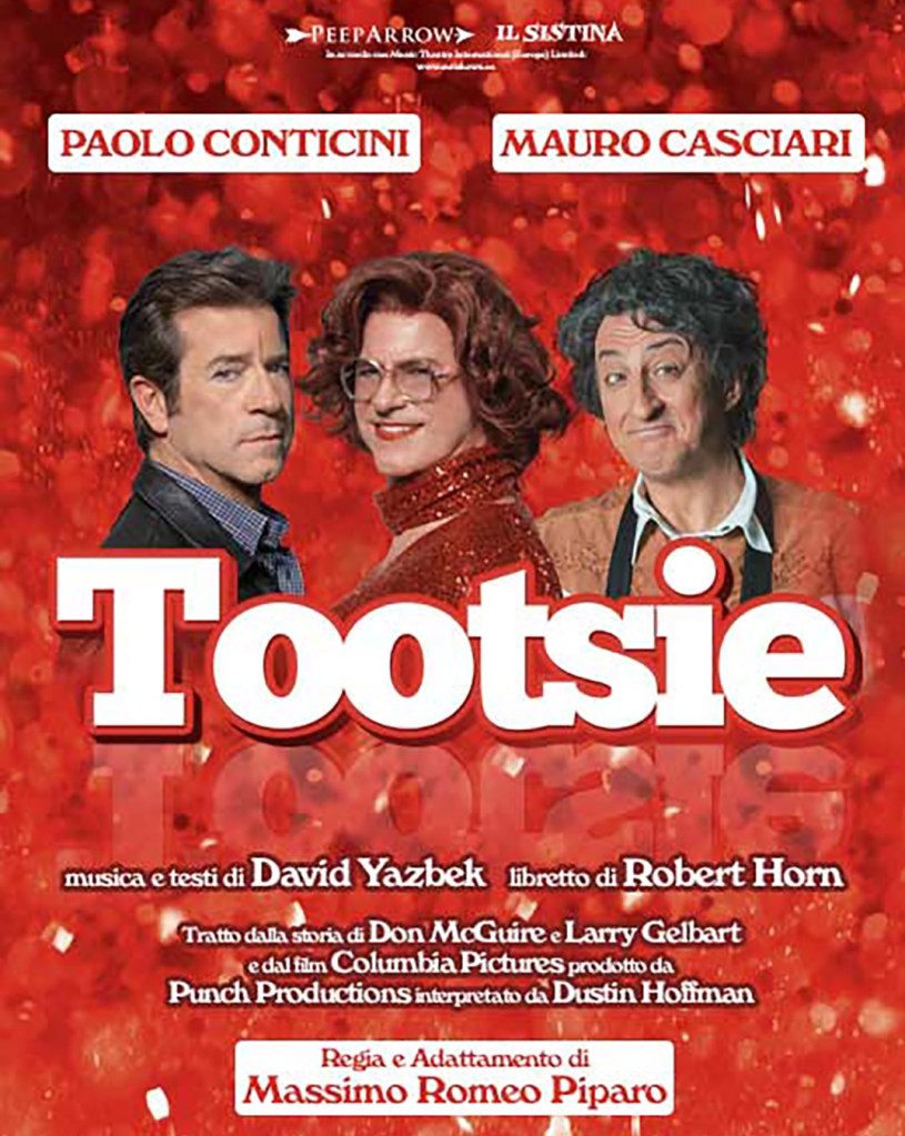 Dopo il grande successo di pubblico e critica ottenuto nel Tour della scorsa Stagione, torna in scena nei teatri italiani “Tootsie”, il Musical firmato e adattato in italiano da Massimo Romeo Piparotratto dal famoso film del 1982 di Sydney Pollack con l’indimenticabile interpretazione di Dustin Hoffman. Sul palcoscenico del Teatro Sistina dal 22 gennaio al 1 febbraio, lo spettacolo sarà in tour in diverse città italiane: attualmente in scena a Imola, poi Vicenza, Firenze, Messina, Imperia, Modena, Bolzano.